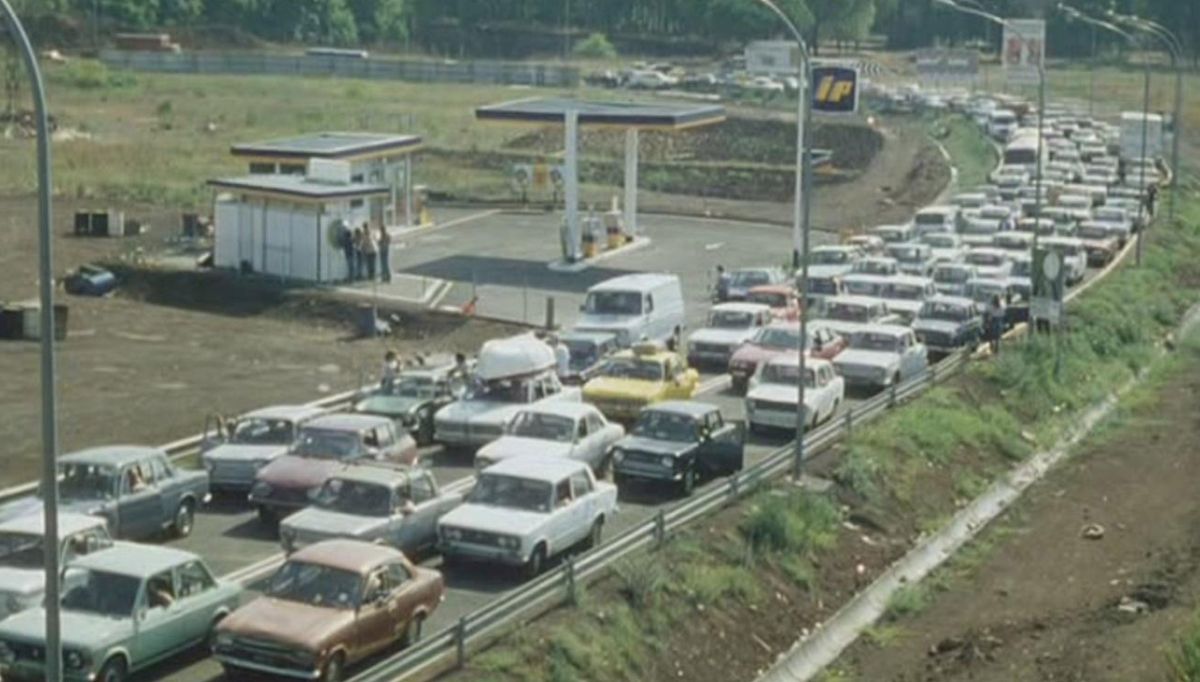 Un corte di macchine procede sempre più lentamente lungo la tangenziale di Roma, sino a che ogni possibilità di movimento si blocca. L'ingorgo durerà 36 ore. Sin dai primi momenti il nervosismo dei viaggiatori è evidente. Quando sfumano le speranze di una veloce soluzione, mancano notizie, si palesano le prime necessità , la tensione sale al massimo e non pochi trascendono. La circostanza permette di scoprire i lati peggiori dell'umanità presente...
