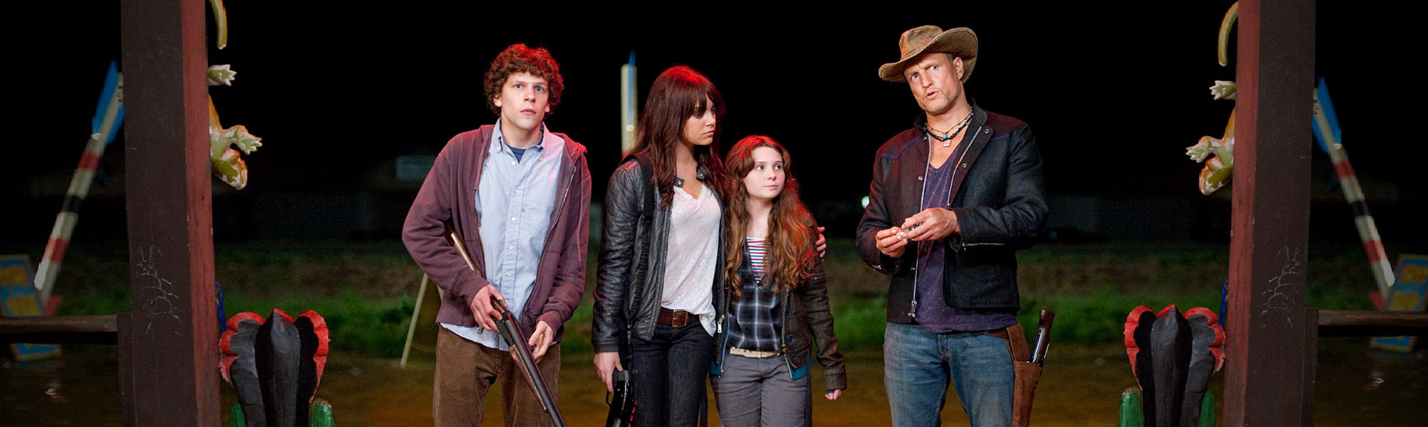 Columbus, un imbranato studente universitario (Jesse Eisenberg The Village, The Social Network) è sopravvissuto alla peste che ha trasformato gli esseri umani in zombie perché ha paura di tutto. Tallahassee invece (Woody Harrelson Non è un paese per vecchi), un amante delle armi da fuoco e delle merendine, non ha paura di niente. Questi due improbabili personaggi stanno per affrontare la sfida più terrificante della loro vita: sopravvivere l’uno all’altro! Il premio Oscar® Emma Stone (2016, Miglior Attrice, La La Land) e Abigail Breslin (Little Miss Sunshine) completano il cast. Tra gli attori anche Bill Murray che appare in un cameo.